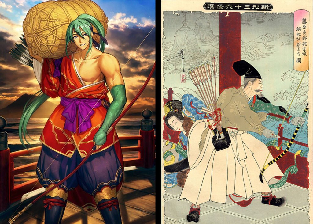 Tawara Touta olarak da tanınan Hidesato söylenene göre Omi’deki Ejderha Sarayı’nı rahatsız eden dev bir kırkayağa yok etmiştir.