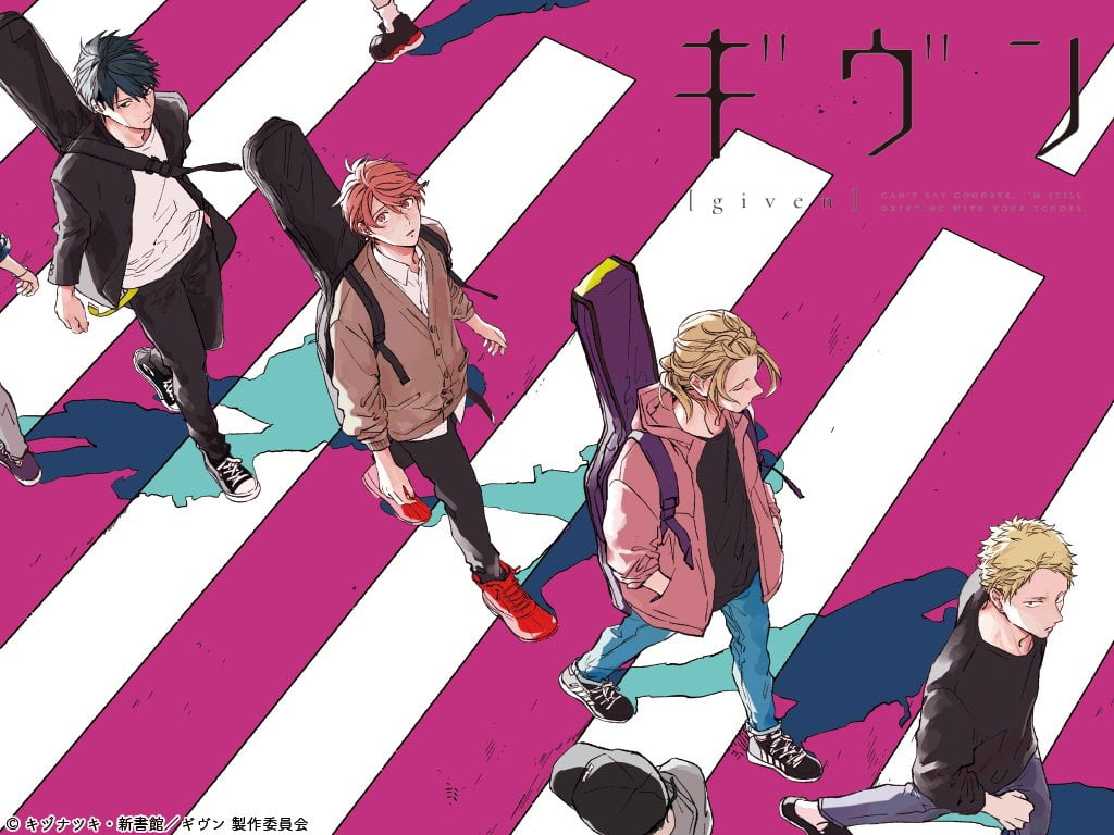 Müzikle bir araya gelen bu dört gencin hayatında ki sorunları birlikte aştığı, birbirlerine güzel tavsiyeler verdiği, bazen kendilerini çok işe yaramaz hissettikleri , bazende komiklik yaptıkları bir anime Given. İşlenen aşk oldukça başarılıydı. Karakterler arasında ki etkileşim ve olayların işleyişi oldukça akıcıydı. İzlerken bir aşk böyle gelişmeli diye hissediyorsunuz. Karakterlerin kendine özgü olması ve orjinalliği aralarında ki etkileşimin başarılı olmasında en büyük etken bence.